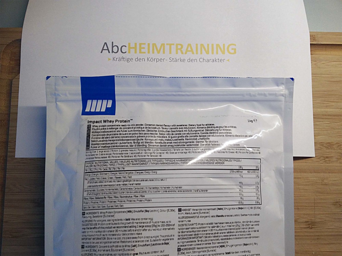 Aber kommen wir nun zum eigentlichen Whey Protein Test. Wie du oben sicher schon gelesen hast geht es heute um das Impact Whey Protein von MyProtein.com. Um genauer zu sein um den Geschmack „Cinnamon Danish“ bzw. „Dänischer Zimtkuchen“.