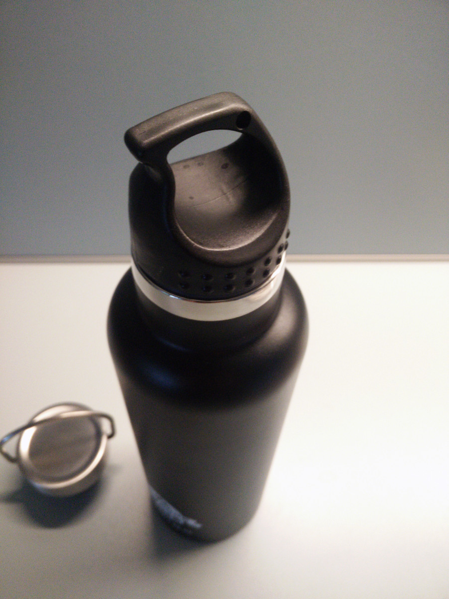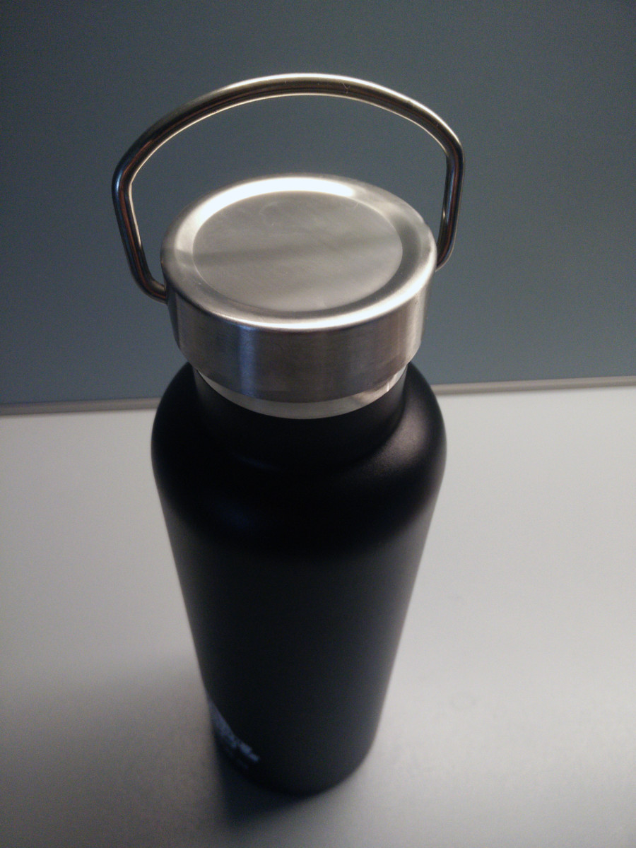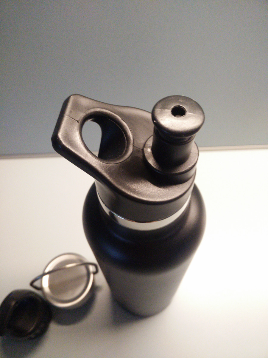 Kommen wir also zum interessanten Teil. Die vier verschiedenen Deckel. Zum Ersten haben wir einen Schraubverschluss aus Edelstahl mit beweglichem „Henkel“. Dieser Verschluss ist perfekt für die Nutzung zu Hause oder im Büro. Insgesamt ist dieser Deckel mein genereller Favorit für alles geworden, ich benutzen selten einen anderen.