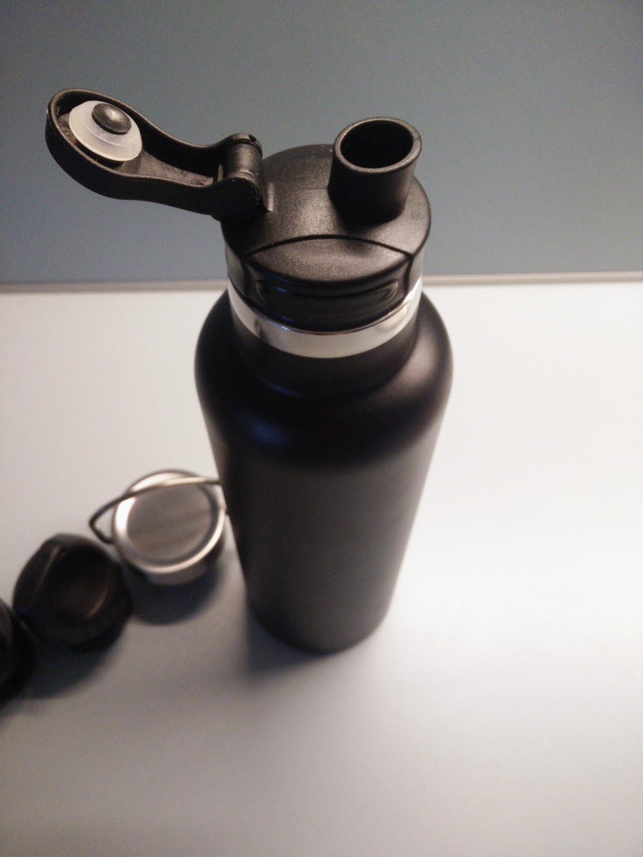 Nachdem ich dass Paket entgegen genommen und geöffnet hatte, war ich im ersten Moment ein wenig überfordert. Vor mir stand eine robuste Wasserflasche mit ganzen VIER Verschlüssen. Doch bevor ich weiter darauf eingehe erst einmal ein paar Fakten zu der Flasche selbst. Die Flasche besteht aus stabilem Edelstahl und ist vollkommen BPA frei. Außerdem ist sie doppelwandig. Das heißt, dass die Flasche aus zwei Edelstahlwänden besteht, welche durch ein Vakuum getrennt werden. Durch dieses Feature ist die Wasserflasche in der Lage, Getränke 12 Stunden kalt bzw. 24 Stunden warmzuhalten. Man kann sie dementsprechend auch als Thermosflasche benutzen. Das Fassungsvermögen der Flasche beträgt 750 ml und sollte somit für die meisten Verwendungen ausreichen.
